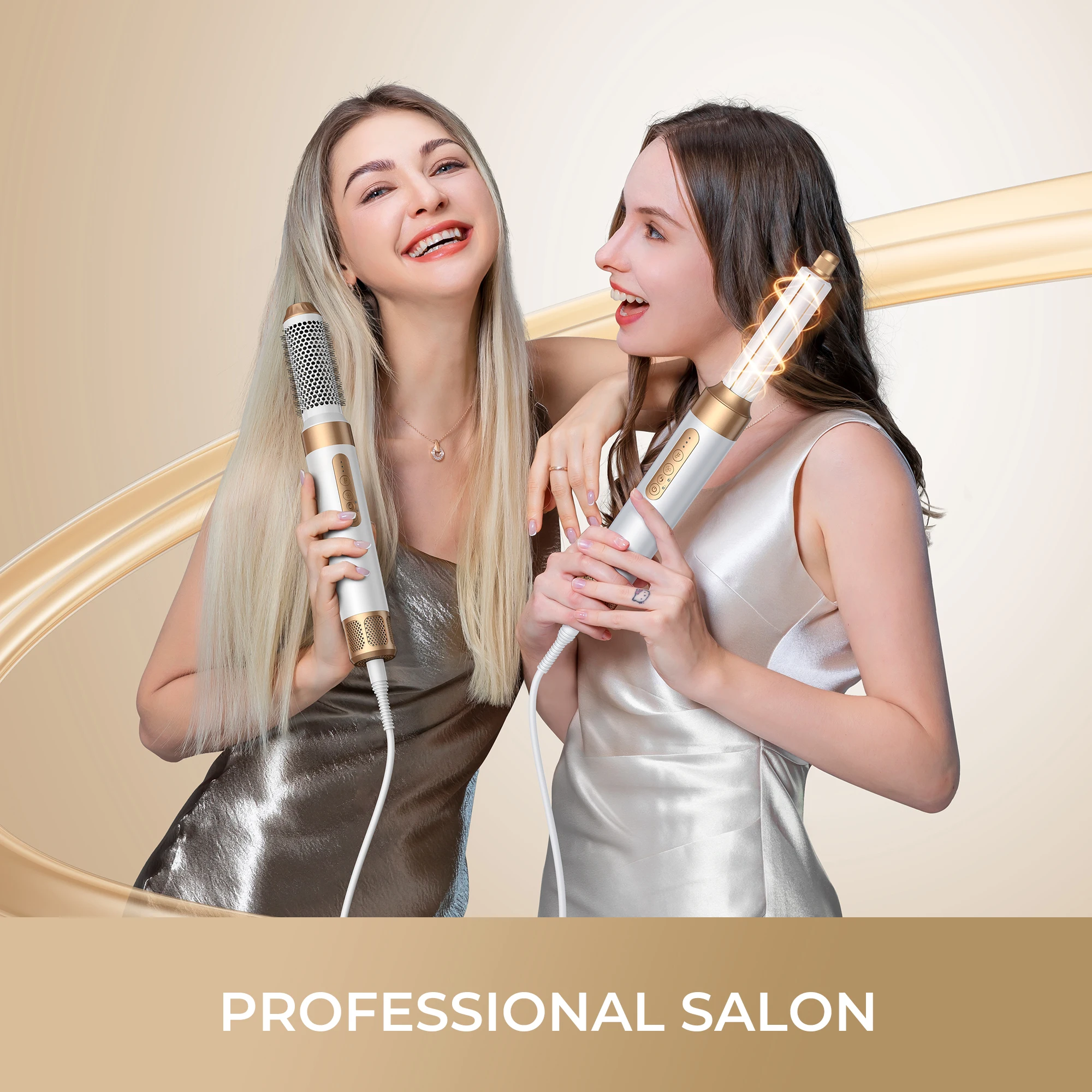 ✅ 7 Interchangeable Attachments – Includes hair dryer nozzle, straightening brush, curling barrels, diffuser, and more for salon-quality styling at home.